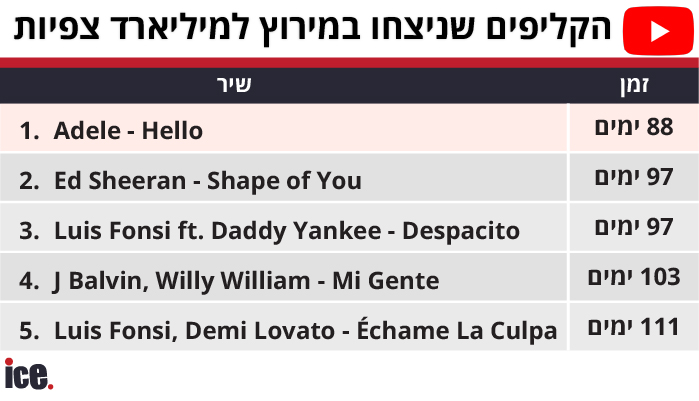 המצעד: השירים ששברו שיאי צפייה ביוטיוב