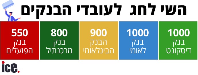 שני בנקים חילקו 1,000 שקל לעובדים לחג, שניים נוספים צמודים ואחד הסתפק בשי צנוע מאוד של 550 שקל. מי הבנק שלא חסך, או התעלם מסכסוך עבודה כדי לרצות את העובדים? ואיזה בנק שרשם רווח נקי מטורף בחר לחסוך?