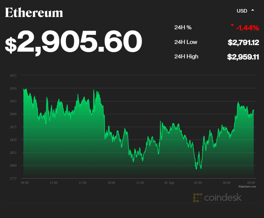 האתריום שוב מתחת ל-3,000 דולר, זאת לאחר שירד בשיעור של 1.44% בדרך לשער חדש של 2,905.60 דולר בלבד ליחידה, בעוד ששווי השוק של המטבע השני בחשיבותו ירד ל-341.11 מיליארד דולר בלבד.
