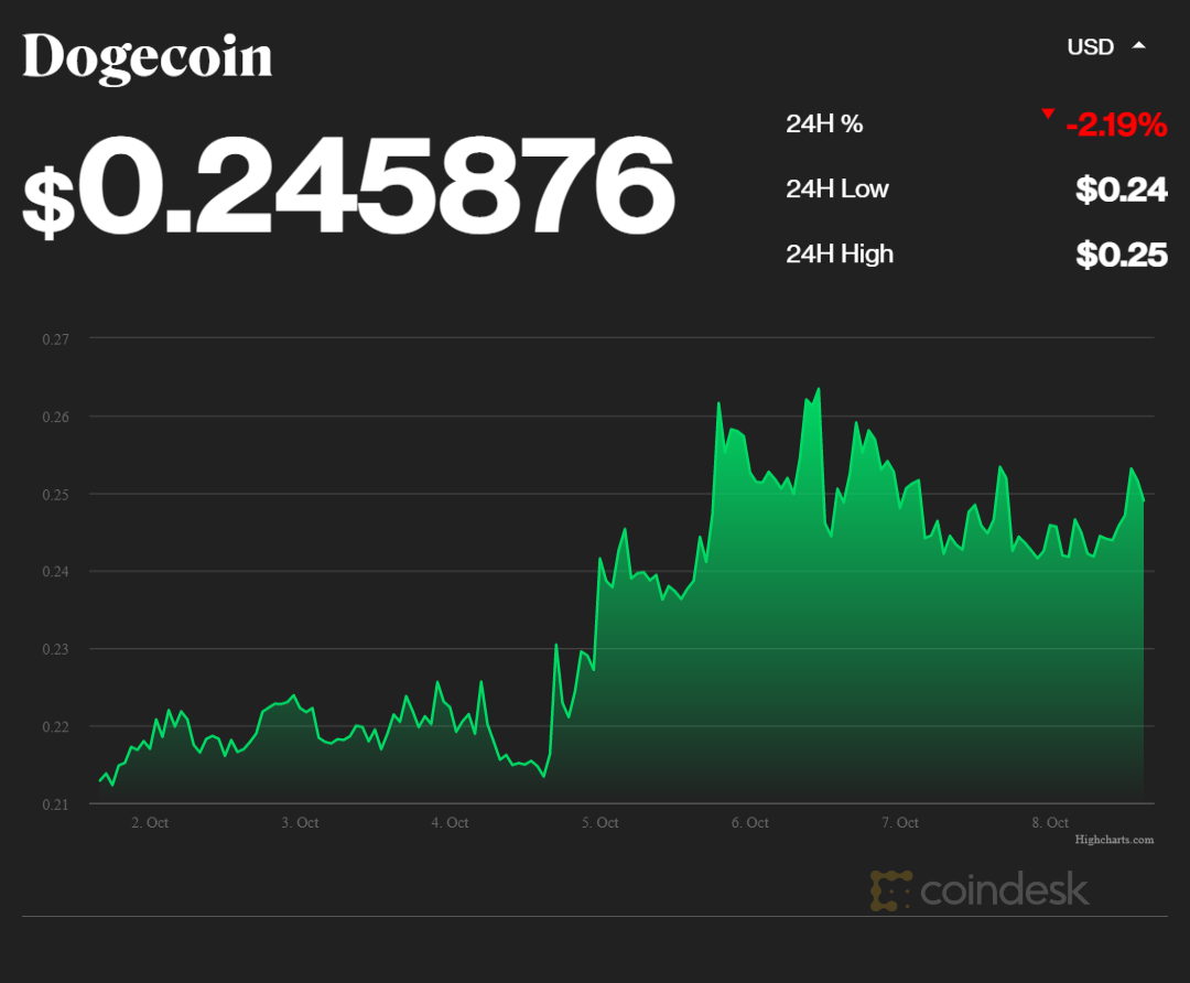 על אף ירידה היום בשיעור של 2.19% לשער של 0.245 דולר בלבד, הדוג'קוין רשם עלייה נהדרת מ-0.212 בתחילת השבוע, שיפור של כ-15% בסך הכל לערכו, מה שגם הגדיל את שווי השוק שלו ל-32.20 מיליארד דולר בסך הכל. ביננס קוין עלה בשבוע האחרון משער של 410 דולר ביום שישי הקודם ל-422 דולר כעת, טיפוס של כ-3% בערכו בלבד, זאת כאשר איבד 4.38% ביממה האחרונה מה שהוריד את שווי השוק שלו ל-70.91 מיליארד דולר בלבד.