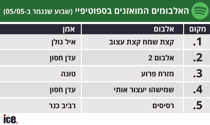 מהפך: איל גולן מודח מהצמרת | דירוג ספוטיפיי