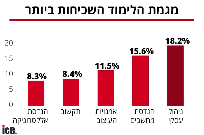 המקצועות השכיחים ביותר במסגרת לימודי הסמכה מקצועית הן: עסקי- 18.2%. הנדסת מחשבים – 15.6%. אמנויות העיצוב – 11.5%. תקשוב – 8.4%. הנדסת אלקטרוניקה – 8.3%.