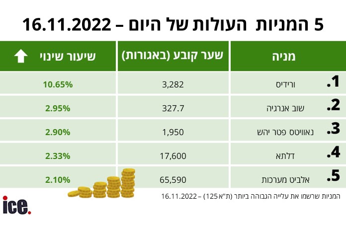 בפסגת המניות היורדות ניתן למצוא את לייבפרסון שאיבדה 10.27% ל-4,037 אג' בלבד, מימון ישיר ירדה ב-6.54% ל-71,000 אג', גילת צנחה ב-6.17% ל-1,962 אג', נאייקס ירדה ב-5.40% ל-8,136 אג' וסוגרת את החמישייה שפיר הנדסה שירדה ב-4.56% ל-3,016 אג'.