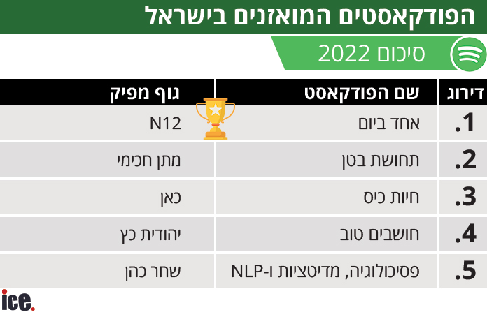 האם "חיות כיס" של כאן הצליח לעקוף את "אחד ביום" של קשת 12? ספוטיפיי חושפת את רשימת הפודקאסטים הפופולאריים בישראל ב-2022