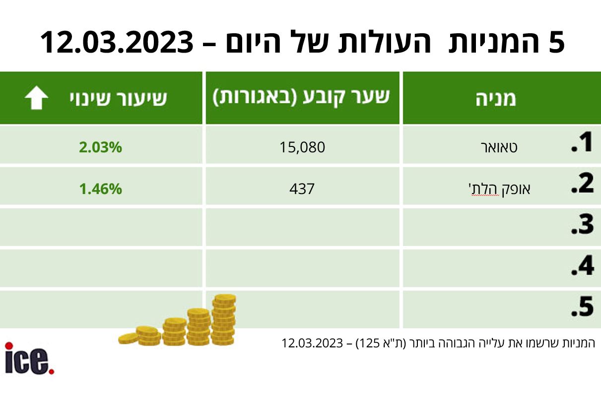 במדד ת"א 125 נרשמו עליות רק בשתי חברות וגם הן הראו עליות מתונות. טאואר היא המניה הצומחת ביותר היום והיא עלתה ב-2.03%, לשער של 15,080 אג'; אחריה אופקו הלת' שרשמה עלייה של 1.46% לשער של 437 אג'.