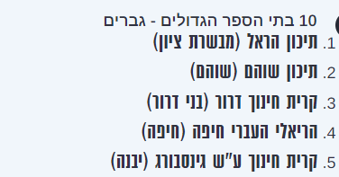 בתי הספר המובילים באחוזי גיוס של גברים בצה"ל. צילום מסך