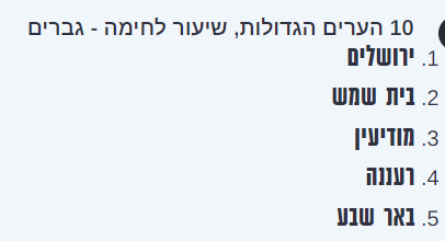 הכי הרבה לוחמים בקרב הערים הגדולות. צילום מסך