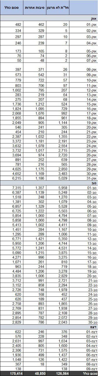 מתחילת המלחמה ה-7/10 – 173,806 ביקשו דמי אבטלה מהביטוח הלאומי כאשר 126,512 יצאו לחל"ת שלא מרצון. מתחילת חודש דצמבר – 12,529 אזרחים ביקשו דמי אבטלה כאשר 8,879 שהוצאו לחל"ת שלא מרצון.