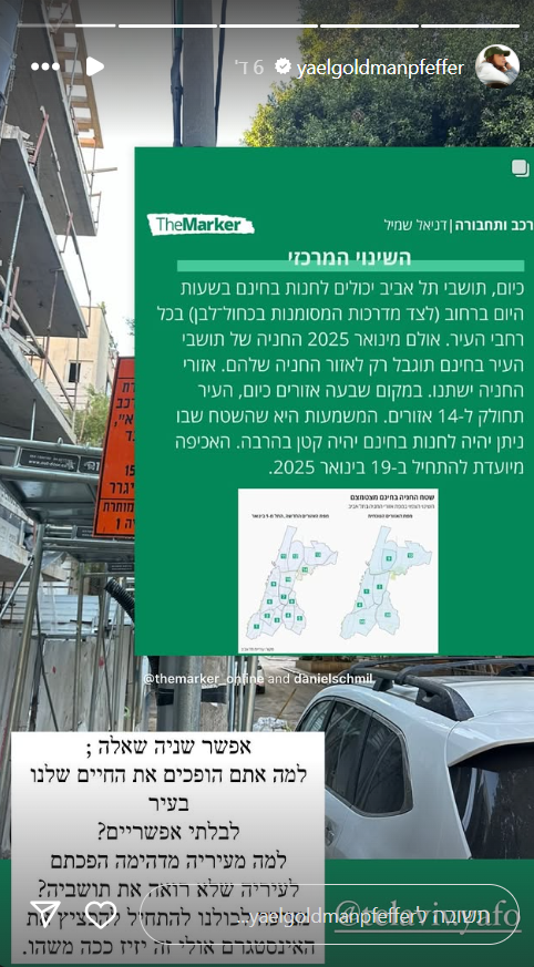 מגישת התוכנית "מרגישות יופי" בערוץ 12 יוצאת נגד העירייה לאחר הפרסום על השינוי המרכזי בהגבלות החניה לתושבי העיר: "למה אתם הופכים את החיים שלנו בעיר לבלתי אפשריים?"