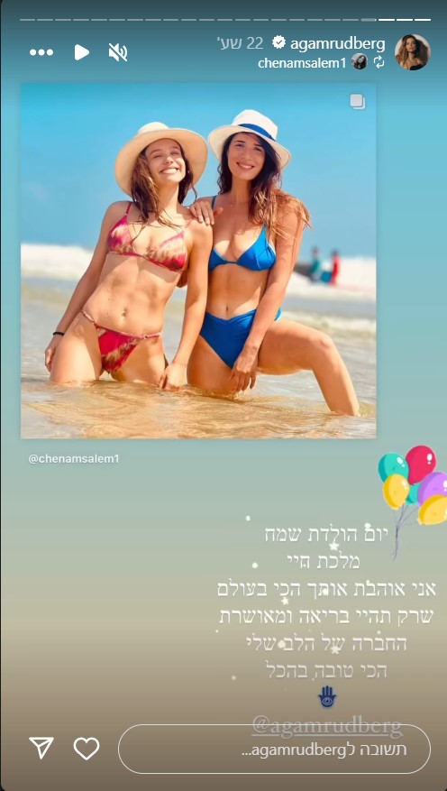 רודברג צירפה את הסטורי שאמסלם כתבה לה, בשיתוף תמונה של השתיים, ובו כתבה לה: "יום הולדת שמח מלכת חיי. אני אוהבת אותך הכי בעולם. שרק תהיי בריאה ומאושרת. החברה של הלב שלי, הכי טובה בהכל".