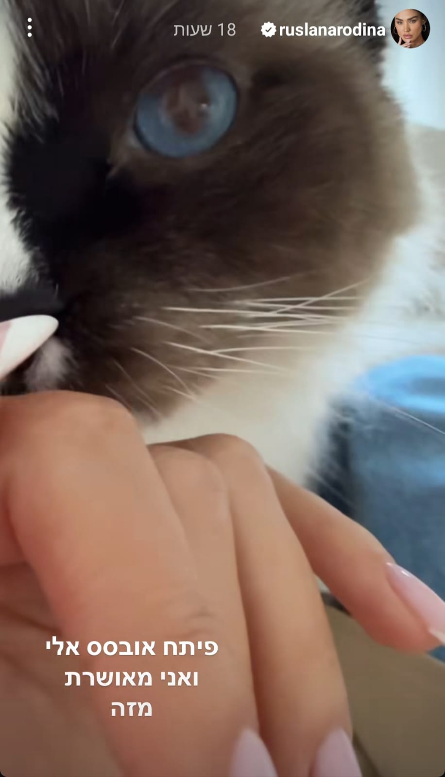 בסטורי חמוד שהעלתה לאינסטגרם שלה ניתן לראות את החתול החמוד שמגיע לאמא רודינה לקבל קצת ליטופים ואהבה. על גבי הסרטון כתבה: "הוא פיתח אובסס אליי ואני מאושרת מזה".