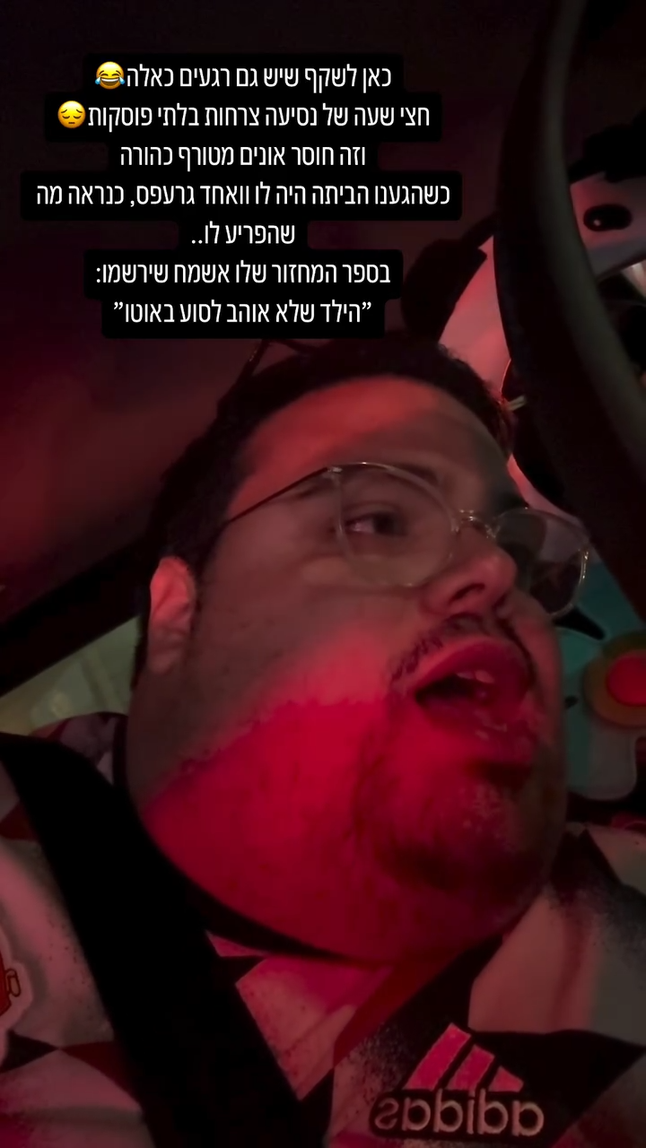אמש (שבת) העלה הכוכב סטורי לחשבון האינסאגרם שלו וחשף תיעוד אישי ברגע של תסכול עצום. צברי צילם את עצמו בזמן נסיעה באוטו עם בנו התינוק כשהוא לא רגוע, וכל הורה יודע שאין דבר יותר קשה ומתסכל מזה. הכוכב כתב: "כאן כדי לשקף שיש גם רגעים כאלה. חצי שעה של נסיעה, צרחות בלתי פוסקות וזה חוסר אונים מטורף כהורה", כתב על רגעי התסכול בנסיעה. אבל בסופו של דבר הכל הסתדר: "כשהגענו הביתה, היה לו וואחד גרעפס, כנראה מה שהפריע לו".