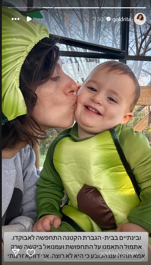 ריטה גולדשטיין, כתבת האוכל של קשת 12, העלתה תמונה מתוקה כל כך של בתה הקטנה עמנואל - שהתחפשה לאבוקדו.