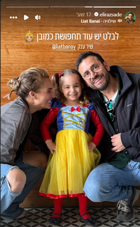 הבת המשותפת של מגישי הטלוויזיה אלירז שדה ואילנית לוי, אריאה, התחפשה לשלגיה.