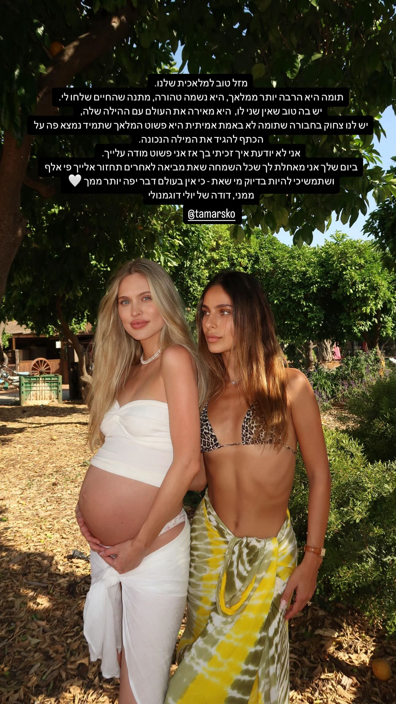 בסטורי שפרסמה בחשבון האינסטגרם שלה, בירכה פליטת הריאליטי את חברתה הטובה וכתבה: "מזל טוב מלאכית שלנו. תומה היא הרבה יותר ממלאך, היא נשמה טהורה, מתנה שהחיים שלחו לי. יש בה טוב שאין שני לו, היא מאירה את העולם עם ההילה שלה".