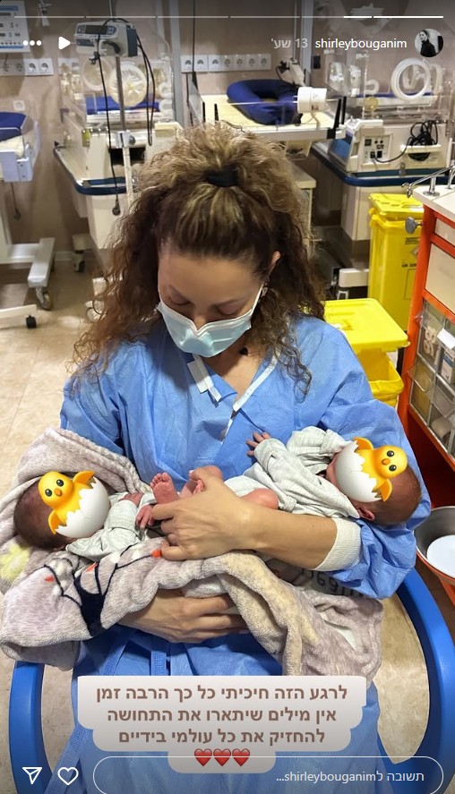 שירלי בוגנים בתיעוד ראשון עם התאומים: "לרגע הזה חיכיתי"