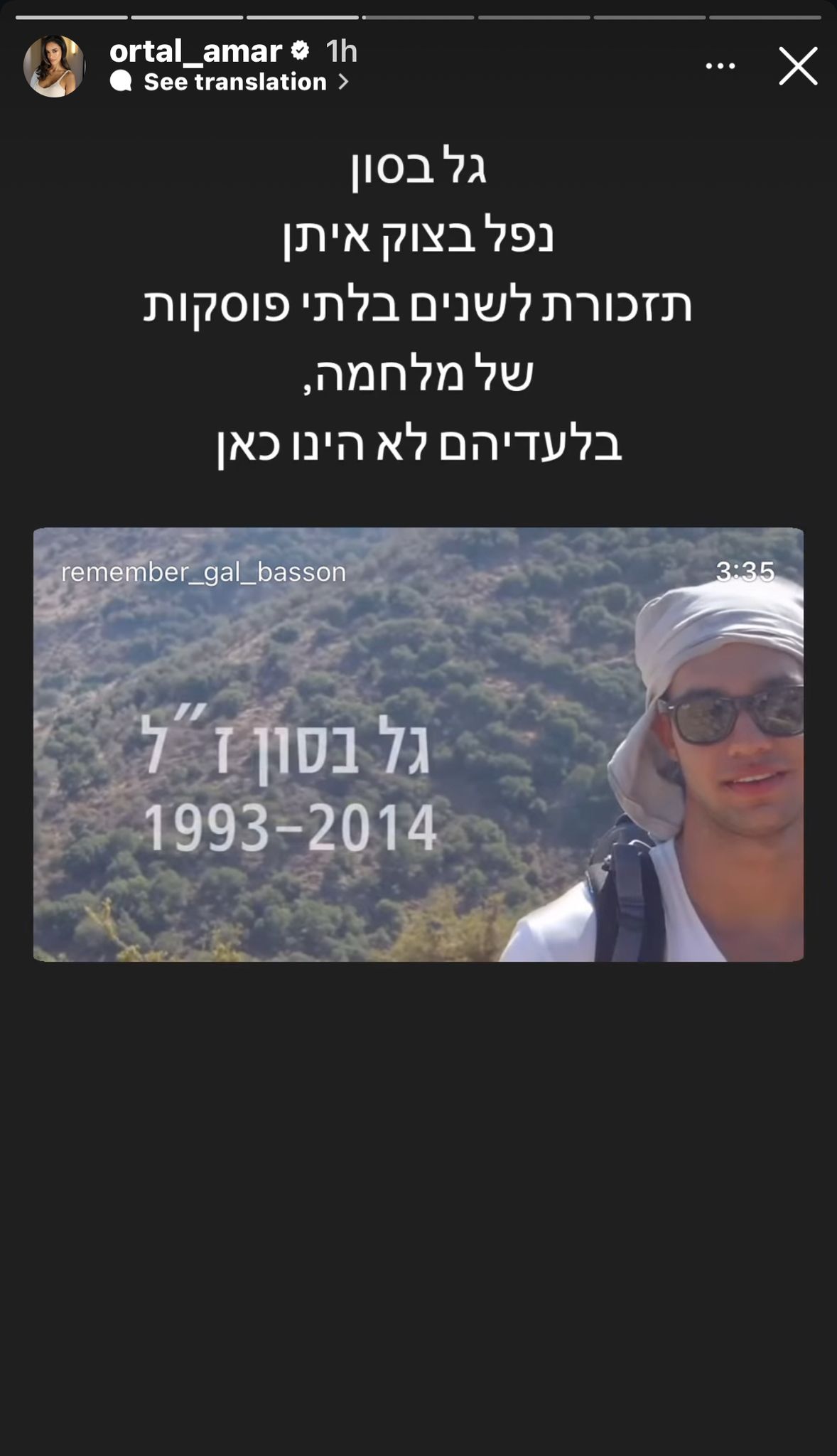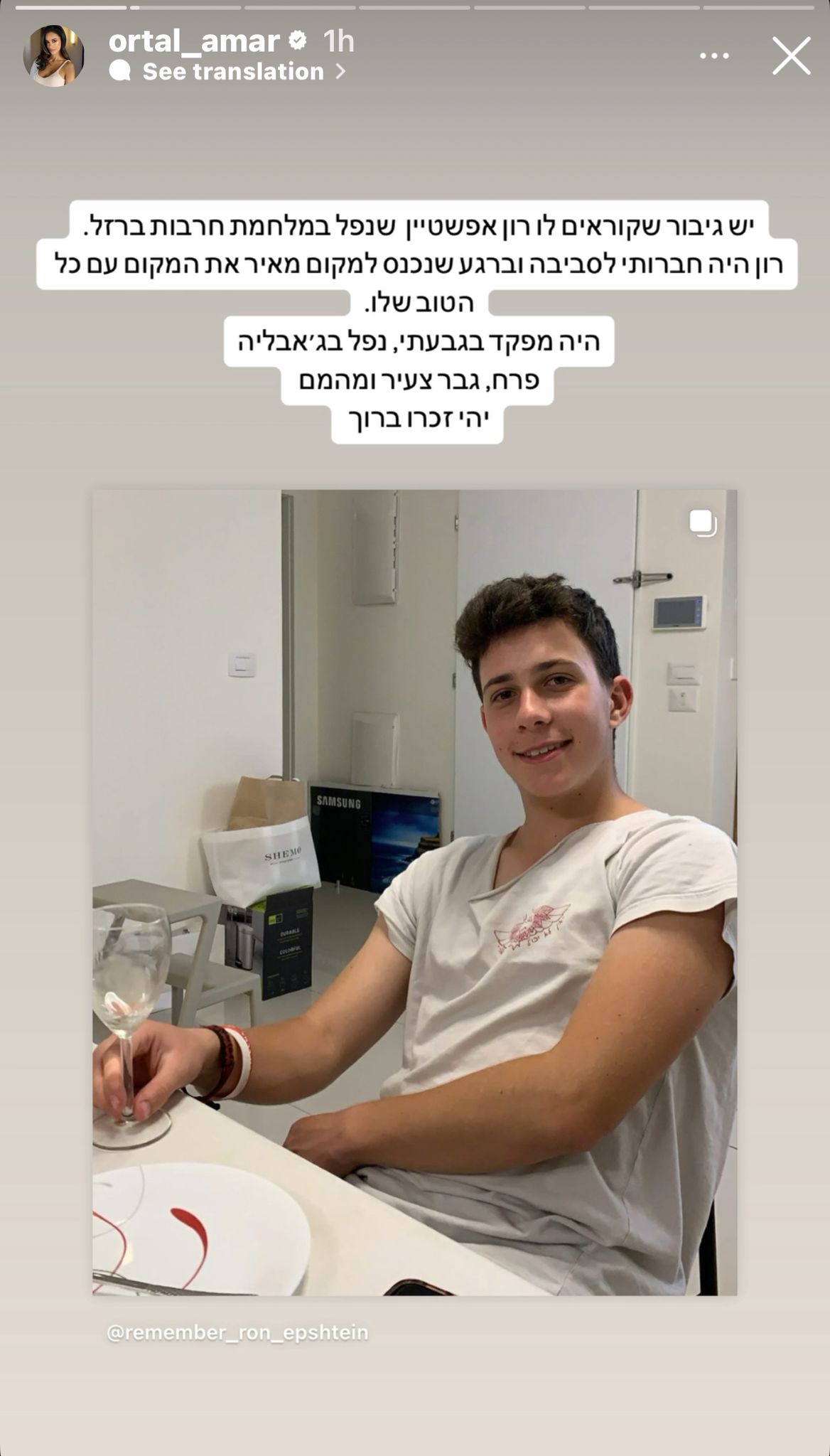 בסטוריז שעלו הבוקר, סיפרה עמר את הסיפורים של עוקביה, את המחווה המרגשת פתחה עמר עם סיפורו של רון אפשטיין הי"ד שבחרו קרוביו לשתף: "יש גיבור שקוראים לו רון אפשטיין שנפל במלחמת חרבות ברזל. רון היה חברותי לסביבה וברגע שנכנס למקום מאיר את המקום עם כל הטוב שלו. היה מפקד בגבעתי, נפל בג׳באליה. פרח, גבר צעיר ומהמם. יהי זכרו ברוך".
