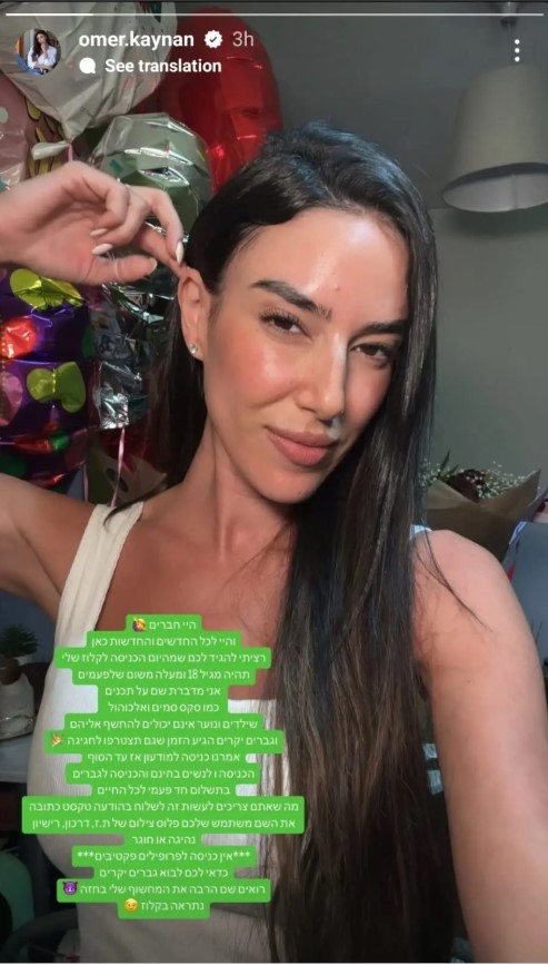 עומר קינן, כוכבת העונה השביעית של "האח הגדול" ברשת 13, העלתה היום (חמישי) סטורי פרובוקטיבי לחשבון האינסטגרם שלה, בו היא סיפרה כי היא חוסמת את אופציית ה"קלוז פרנדס" באינסטגרם רק לבני 18 פלוס, כשעל הדרך החליטה לקחת כסף עבור כך לגברים בלבד, כאשר נשים יוכלו להיכנס בחינם.