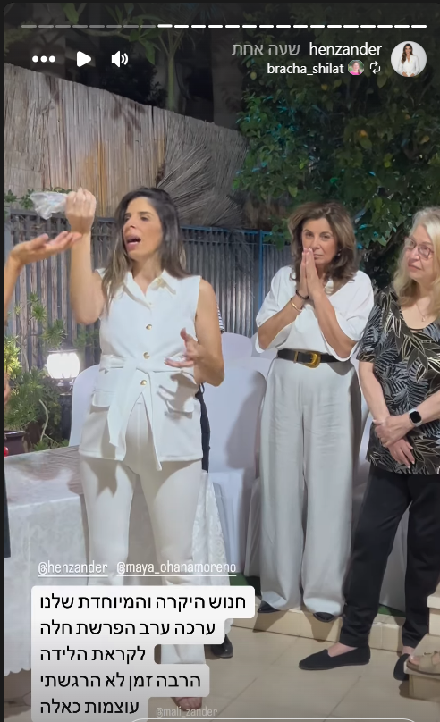 רק בתחילת השבוע היא החליטה לקיים ערב הפרשת חלה. את הערב היא ערכה בעזרתה של ברכה שילת (פעילה בהפצת יהדות וחסידות חב"ד בקרב צעירים בישראל), ואליו הגיעו גם זוכת "האח הגדול" יובל מעתוק והקונדיטורית אור שפיץ. הערב עצמו הוקדש לזכרה של נועה זנדר ז"ל, אחותה של חן שנרצחה בפסטיבל הנובה ב-7 באוקטובר.