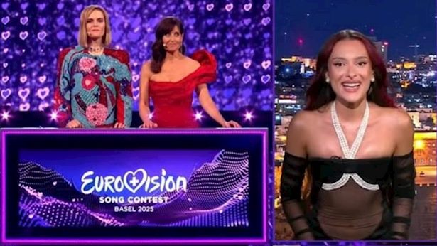 נציגת ישראל לאירוויזיון 2024, עדן גולן, הבטיחה הפתעה לרגע שידור נקודות השופטים בישראל - וקיימה. גולן שהגישה את הניקוד מתל אביב, לבשה שמלה שחורה עם קולר כסוף מנצנץ שנמשך מתחת לחזה ונראה כמו סמל החטופים שנאסר עליה לענוד.