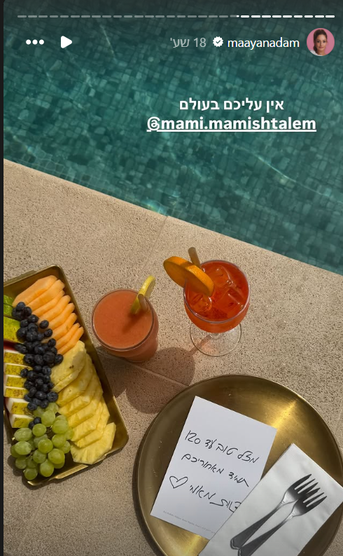 בסטורי ששיתפה מגישת הטלוויזיה, כתבה יונה אדם, אמא של מעיין: "אוהבת אותך מלא, גאה בך יותר מכפי שציפית ויכולת לדמיין. מאחלת לך בריאות טובה, המשך יצירה ועשייה משמעותית ומוצלחת, זוגיות אוהבת, סיפוק ושמחה מהגוזלות וגם קצת נחת מהסבתא".