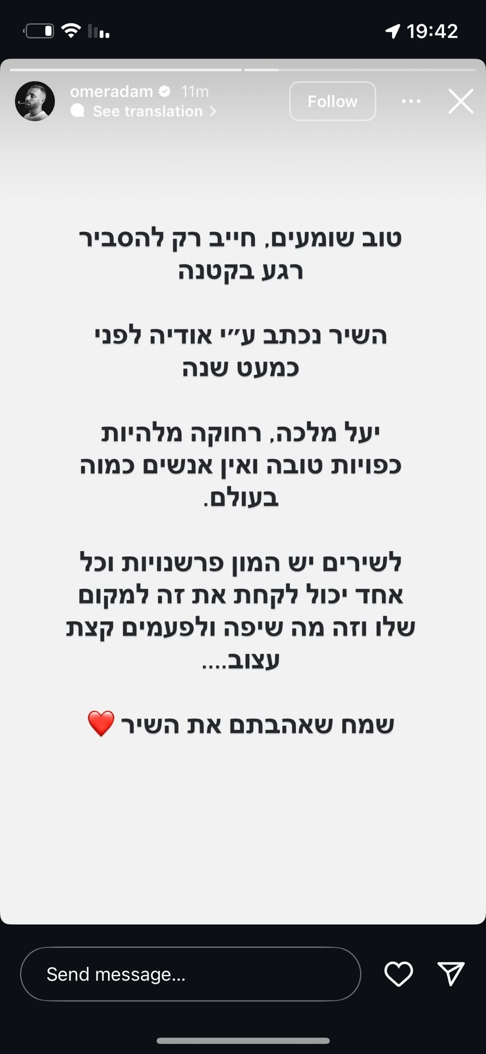 הסטורי של עומר אדם (צילום: אינסטגרם עומר אדם)