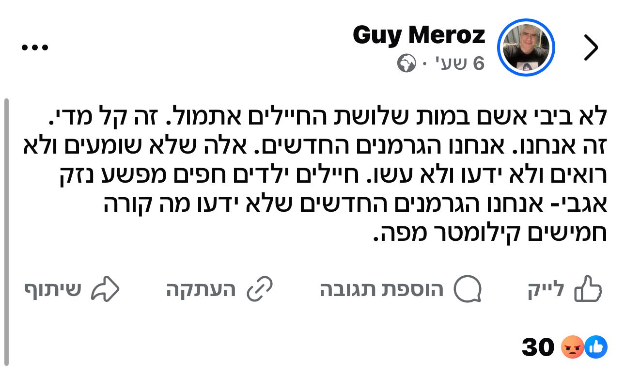 גיא מרוז: "ביבי לא אשם במות שלושת החיילים אתמול"