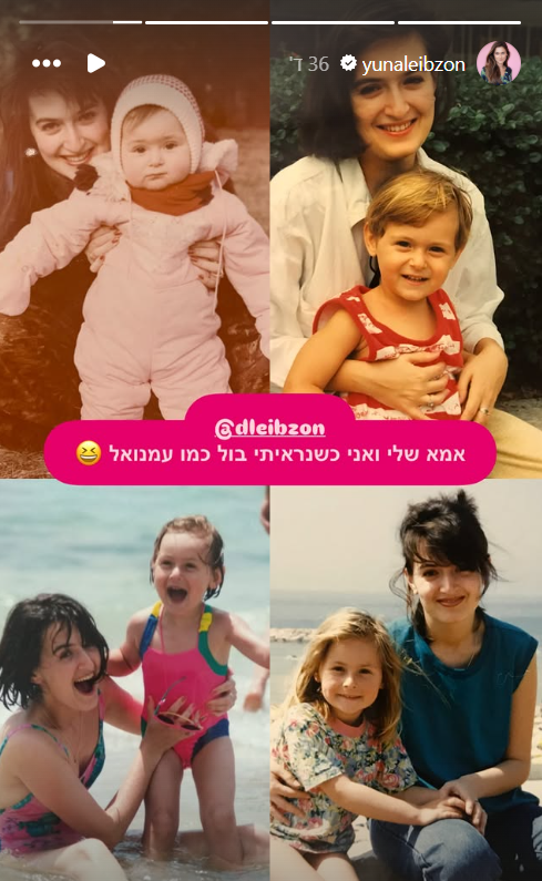 הפעם היא עושה זאת בסוף השבוע כשהיא חוגגת את יום הולדתה של אמא שלה. לייבזון גם כתבה ברכה מרגשת עבורה ופרסמה בסטורי: "מזל טוב לאמא שלי אהובתי". בהמשך גם הציגה מגוון תמונות ילדות שלה ושל אמא שלה, שלדבריה גם מאוד מזכירות במראה את בנה עמנואל.
