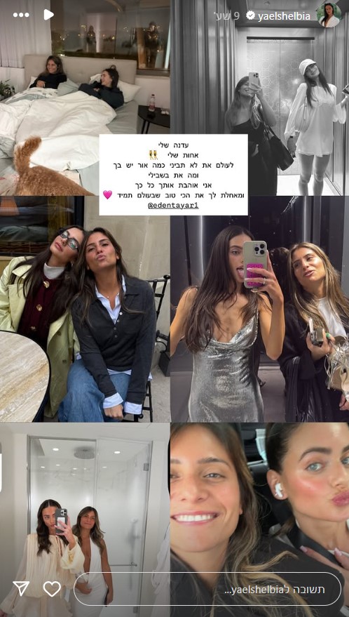 לאחר השמועות על זוגיות עם דני אבדיה, הכדורסלן הישראלי שמשחק בקבוצת פורטלנד טרייל בלייזרס מליגת ה-NBA ובנבחרת ישראל, הדוגמנית יעל שלביה עולה שוב לכותרות. בסטורי שפרסמה בחשבון האינסטגרם שלה, הציגה הדוגמנית הצעירה קולאז' תמונות עם אחת הנשים הקרובות אליה בתעשייה, עדנה תייר - מנהלת סושיאל שעובדת עם כל הכוכבות הגדולות בביצה.