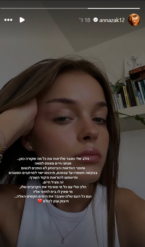 אנה זק כותבת בכאב על המלחמה ומשתפת מהתחושות שלה בפני העוקבים.
