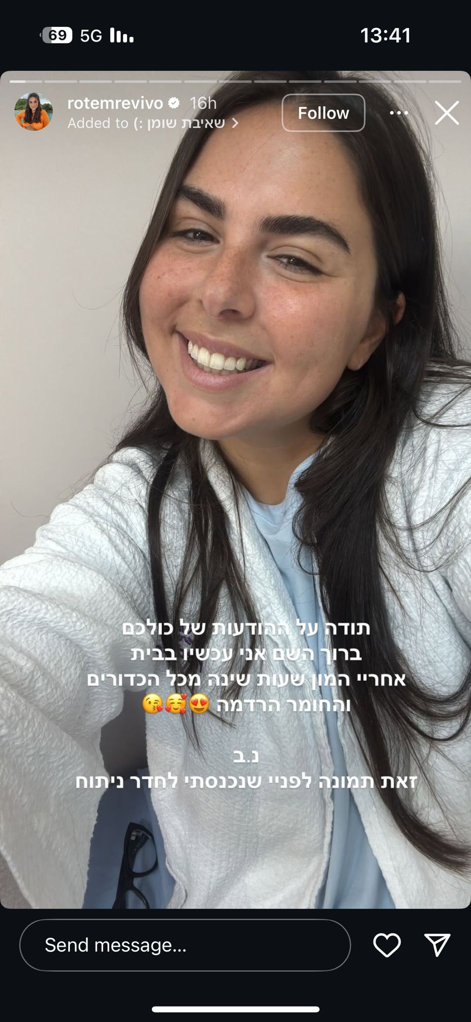 בחודש שעבר, כוכבת העונה האחרונה של "המירוץ למיליון", רותם רביבו, חשפה בפוסט אישי על המחלה הכרונית איתה היא מתמודדת, כעת סיפרה על ההליך הרפואי שעברה.