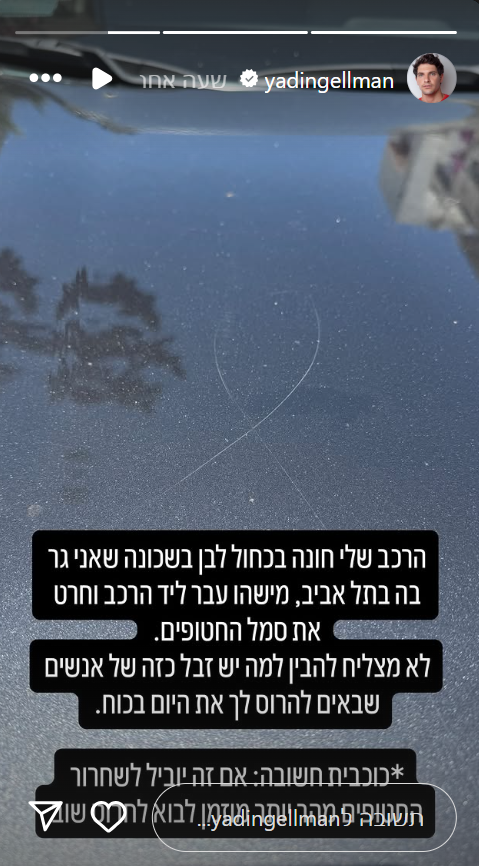 מי פגע ברכב של השחקן והפרזנטור ידין גלמן? "באים להרוס לך את היום בכוח"