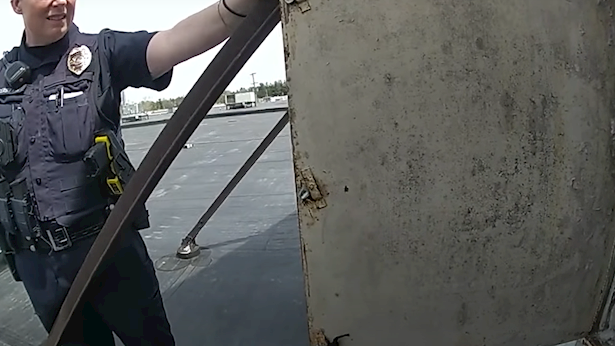 עובדי קבלן שהיו מופקדים על עבודות תחזוקה על גג סופרמרקט Family Fare במידלנד, מישיגן, עבדו במקום וגילו כבל חשמל שהשתרך עד לגג המבנה - מראה חריג למדי. לאחר שהם עלו לגג המבנה, מצאו כי אישה בחרה להתנחל בשלט החזית של הסופרמרקט, והפכה אותו למקום מגוריה הפרטי.