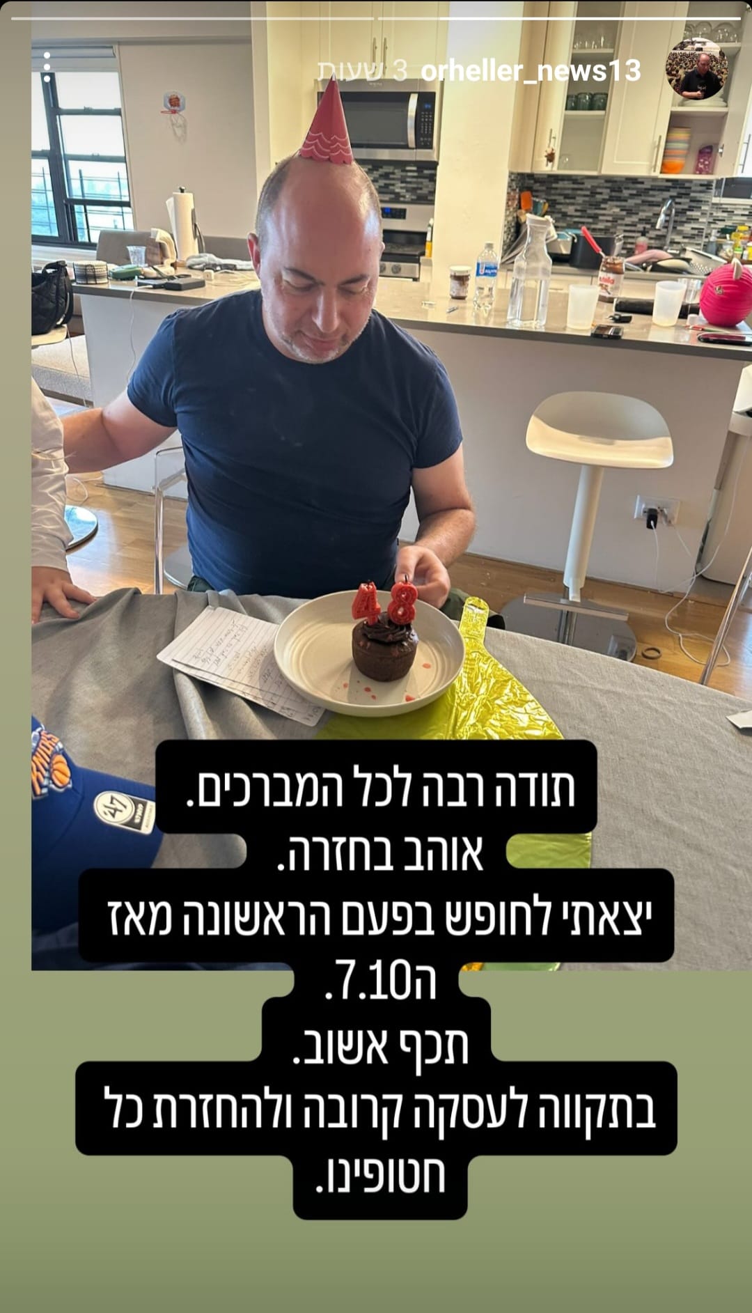 בסטורי שהעלה עם תמונתו כשהוא מברך לאחר כיבוי נרות העוגה, דיבר אור הלר שזוהי הפעם הראשונה שהוא מרשה לעצמו לחגוג יום הולדת כשהוא יוצא לחופשה: "תודה רבה לכל המברכים, אוהב בחזה. יצאתי לחופשה בפעם הראשונה מאז ה-7.10. תכף אשוב. בתקווה לעסקה קרובה ולהחזרת כל חטופינו".