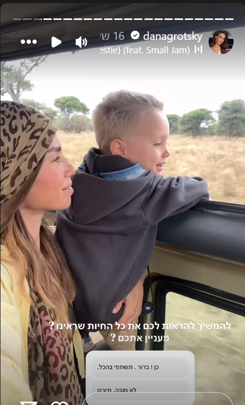 דנה גרוצקי, מגישת קשת "ערב טוב עם גיא פינס", נסעה לבלות עם המשפחה באפריקה ובמהלך הסופ"ש בילתה בספארי.
