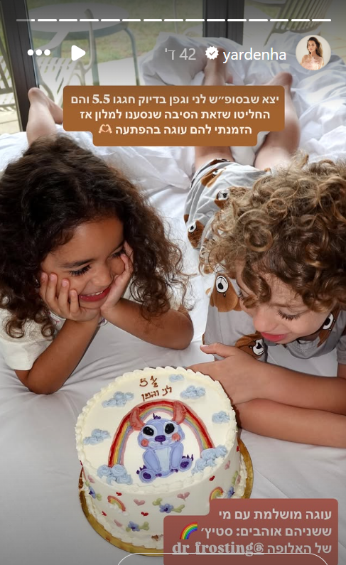 הפעם בחרה הראל לחגוג את החופש הגדול במלון גליליון שנמצא בעמק החולה, יחד עם בן זוגה העיתונאי יוסי יהושע והילדים התאומים שלה. במהלך סוף השבוע הם גם ציינו יום הולדת 5.5 ללני וגפן, ועבורם הראל גם הזמינה עוגה בעיצוב לילו וסטיץ'.