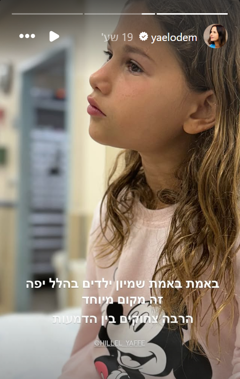 אודם שיתפה סטורי מבית החולים וכתבה: "גבס ראשון במשפחה". לאחר מכן הוסיפה וכתבה כתבת החינוך של חדשות 12: "באמת באמת שמיון ילדים בהלל יפה זה מקום מיוחד. הרבה צחוקים בין הדמעות".