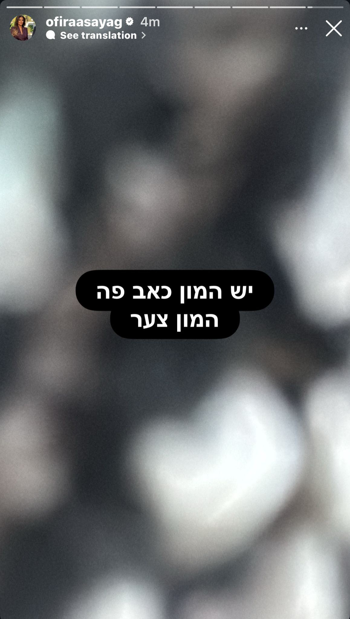 אסייג שיתפה היום סטורי בעמוד האינסטגרם שלה, בו כתבה: "יש המון כאב פה, המון צער"; צפו בסטורי.