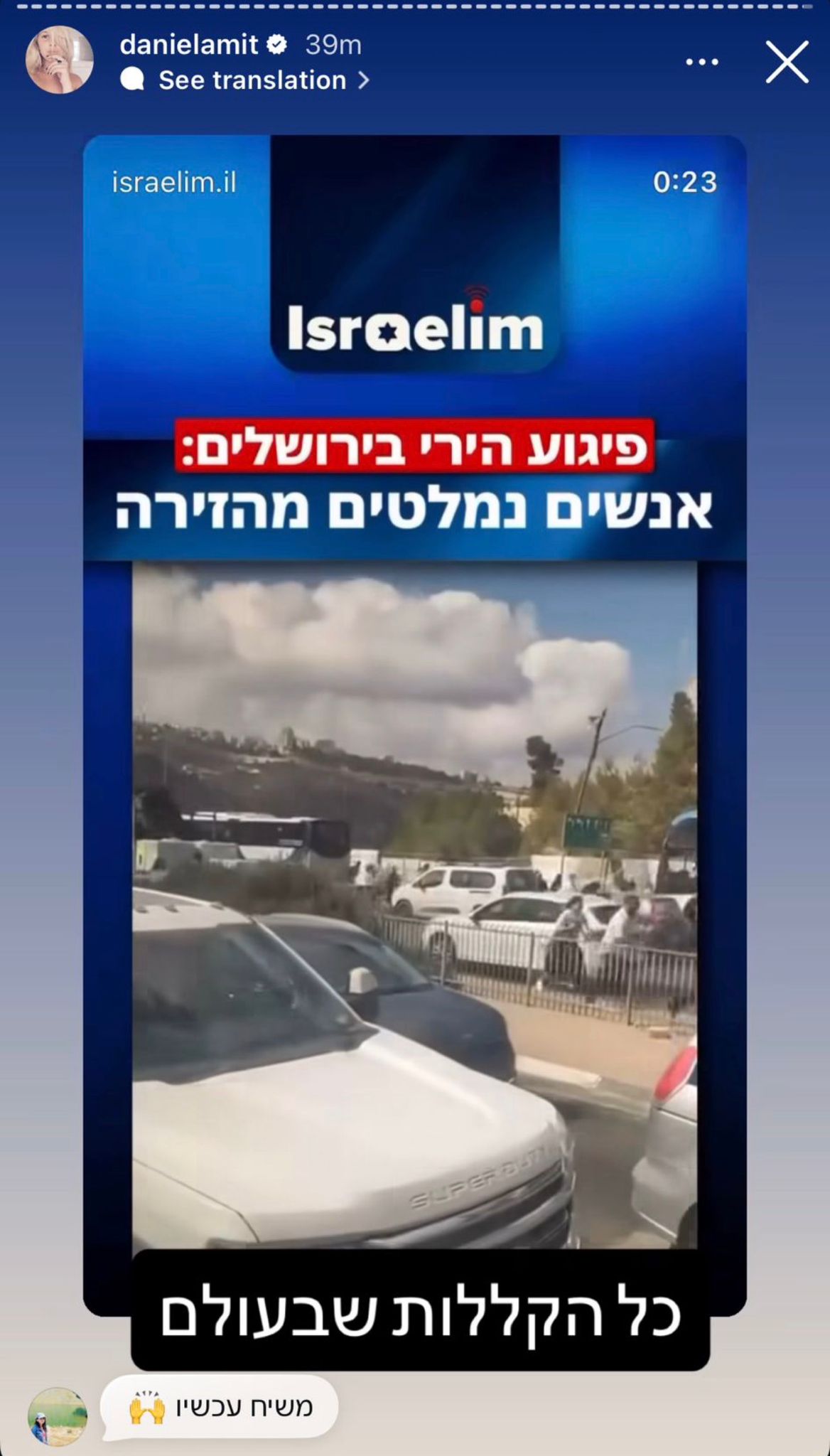משפיענית האוכל דניאל עמית, שחוטפת בימים האחרונים סביב סערת העוגה שהשיקה בוולט ב-139 שקל, וגרמה לגל תגובות בכל ערוצי התקשורת, מגיבה לדרמה החדשה שחלה הבוקר (שני) לאור הפיגוע הרצחני בירושלים, כאשר לפחות 5 נרצחיפ ו-12 פצועים נכון לשלב זה.