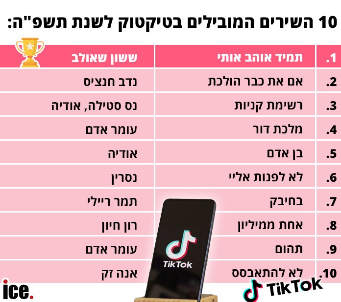 להלן 10 השירים המובילים בטיקטוק לשנת תשפ"ה: