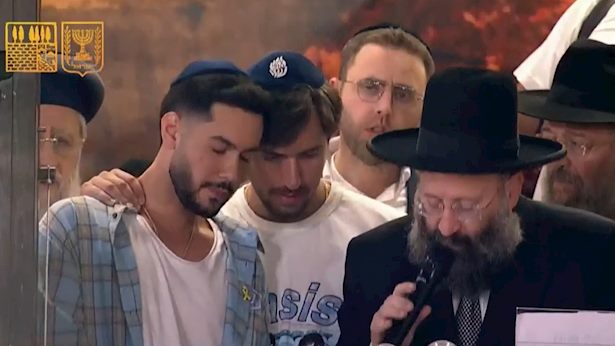 רגע מרגש במעמד הסליחות בכותל, יממה לפני ערב יום כיפור: שורדי השבי אלי-יה כהן ועומר שם טוב נשאו את תפילת "מי שברך" עבור חבריהם שנמצאים עדיין בשבי בעזה וגרמו לקהל לזעוק בתחינה "אמן"
