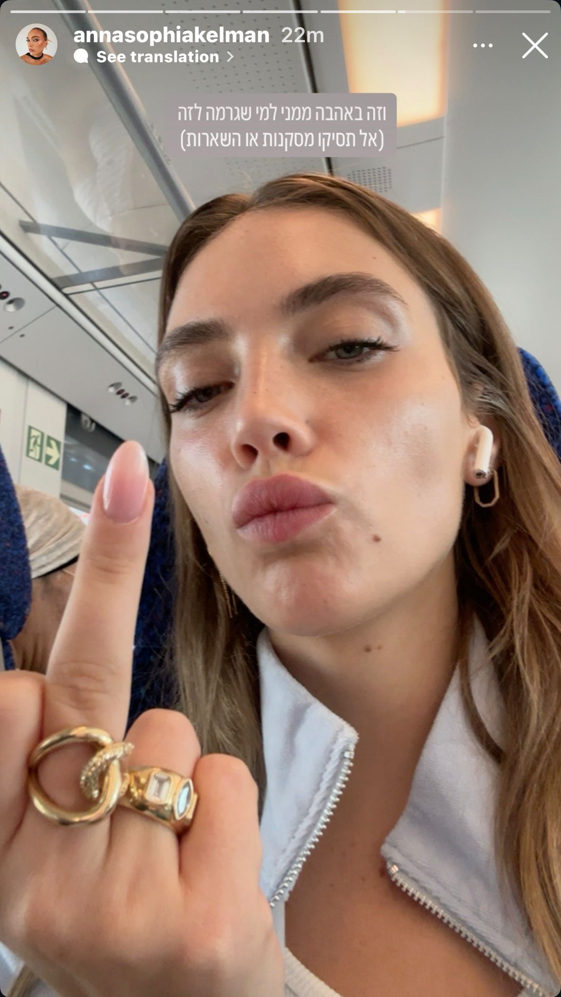 בסטורי לאחר מכן, עקצה בצילום סלפי ואצבע משולשת: "וזה באהבה ממני למי שגרמה לזה (אל תסיקו מסקנות או השערות)"; צפו בסטורי.