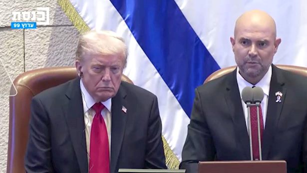 בצורה הומוריסטית כמו שרק הוא יודע, הנשיא האמריקני דונלד טראמפ נחת הבוקר (שני) לביקור בזק בישראל והגיע לנאום בכנסת ישראל, אירוע היסטורי לכשעצמו. הוא התקבל בתשואות אדירות, כאות הוקרה על התרומה הרבה שהייתה לו בחתימת ההסכם להפסקת אש בין ישראל לחמאס ולהשבת החטופים, ונאם בכנסת עד שהופסק בפרובוקציה מביכה של איימן עודה ועופר כסיף שעפו מיד מהמשכן.