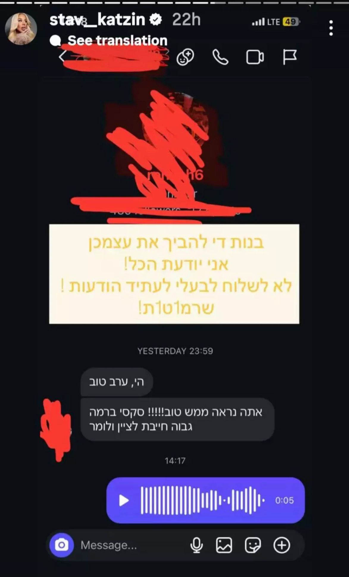 סתיו קצין תוקפת: "לא לשלוח לבעלי לעתיד הודעות! שרמ*ט*!"