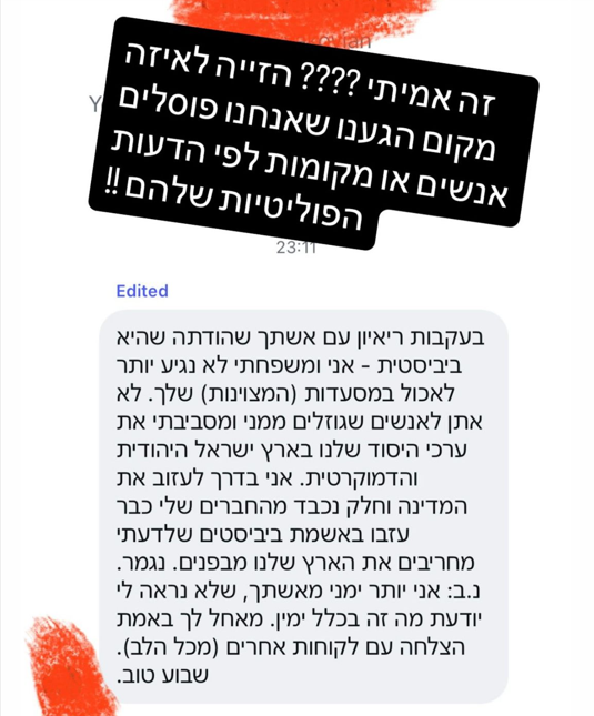 4.ככה צריךהאנונימי 10/2025/26הגב לתגובה זו3 4אני לא חושב שזה דבר רע לפסול מקום על סמך דעות פוליטיות, זכותו המלאה של אדם לקבל החלטות, לא משנה מהי הסיבה לכךסגור