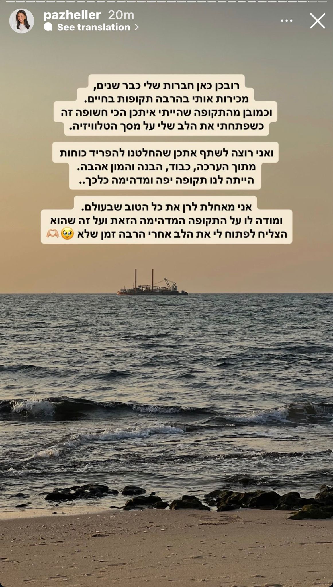 תכנית הריאליטי "אהבה חדשה" הביאה לחיינו לא מעט זוגות, אך כעת הזוג רן מזרחי ופז הלר, החליטו להיפרד על אף הזוגיות הפוטוגנית ברשתות החברתיות, בסטורי ששיתפה הלר, כתבה: "רובכן כאן חברות שלי כבר שנים, מכירות אותי בהרבה תקופות בחיים. וכמובן מהתקופה שהייתי איתכן הכי חשופה זה כשפתחתי את הלב שלי על מסך הטלוויזיה.