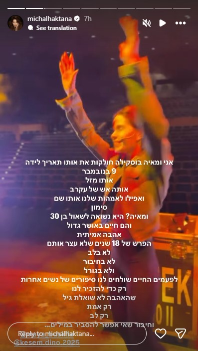 בסטורי כתבה מיכל: "אני ומאיה בוסקילה חולקות אותו תאריך לידה. אותו מזל, אותה אש של עקרב. ואפילו לאמהות שלנו אותו שם, סימון. ומאיה? היא נשואה לשאול בן 30 והם חיים באושר גדול. אהבה אמיתית. הפרש של 18 שנים שלא עצר אותם. לא בלב, לא בחיבור, לא בגורל".