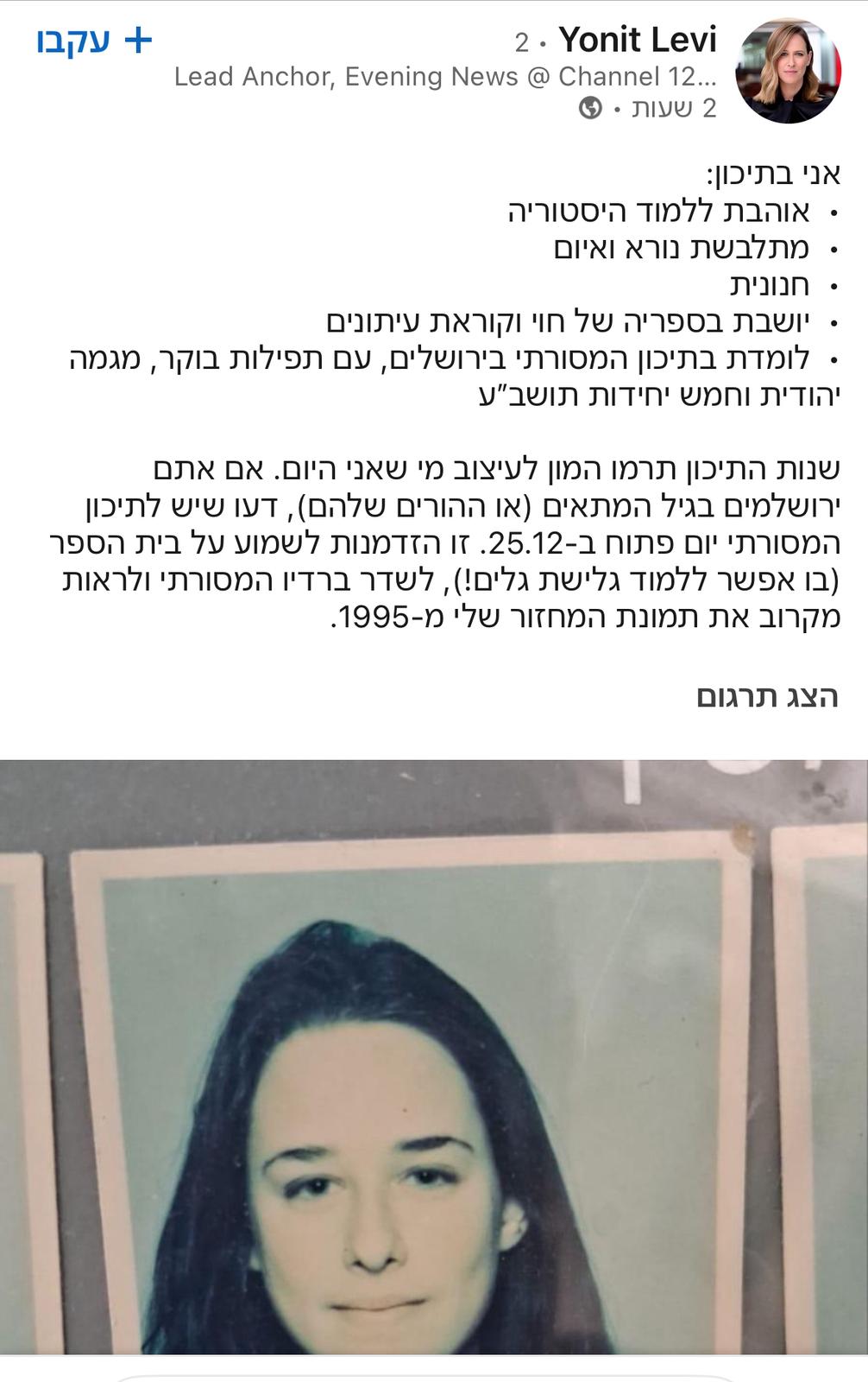 הפוסט של יונית לוי, צילום מסך מתוך לינקדין