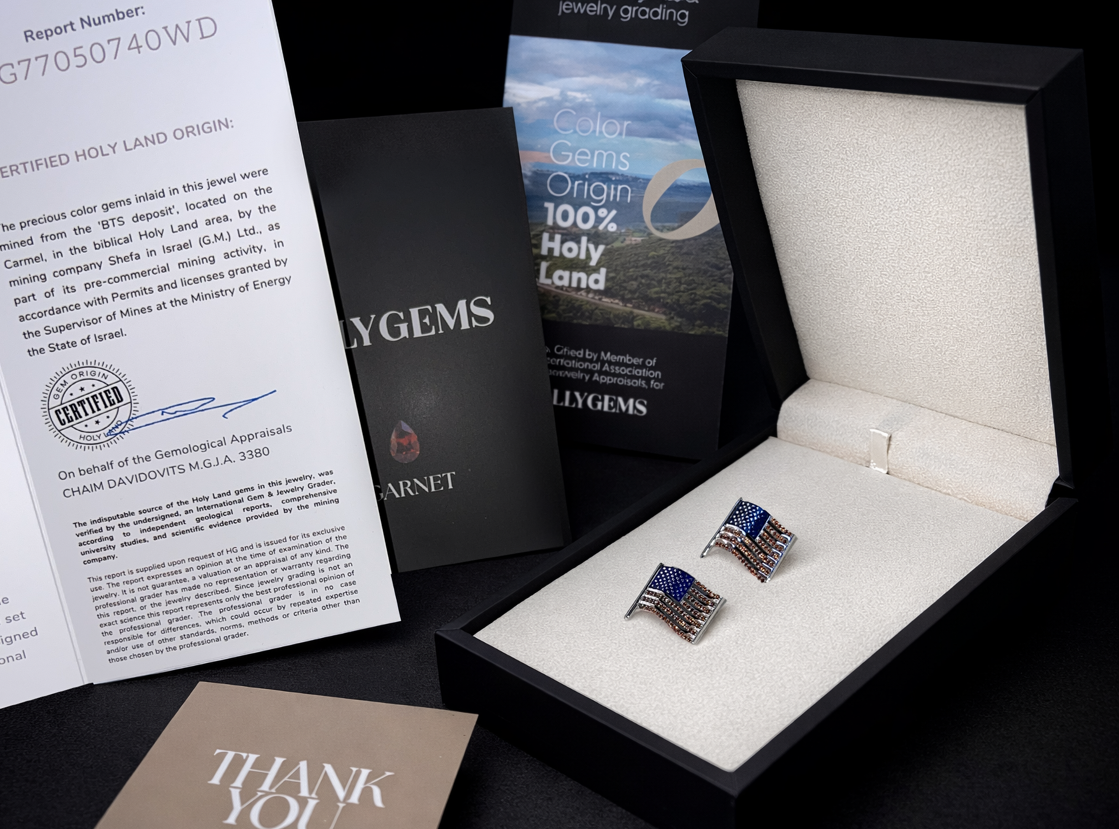 לקראת נסיעת ראש הממשלה לארצות הברית פנתה החברה למשרד ראש הממשלה בהצעה להכין מתנה מיוחדת לנשיא האמריקאי. לאחר קבלת אישור תקציבי הוכנו שתי סיכות דש בצורת דגל ארצות הברית. החברה מציינת כי ניתן להזמין סיכות דומות באתר holy-gems.com במחיר השקה של 1,990 דולר.