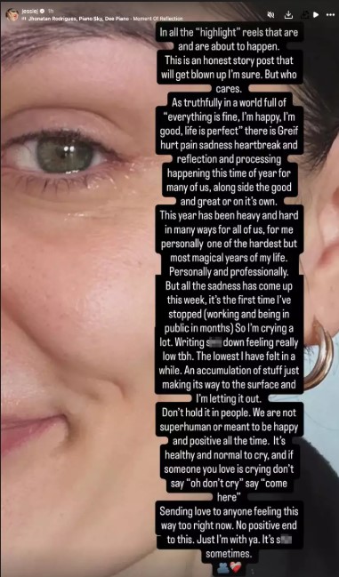 ג'סי ג'יי חשפה את העצבות שנפלה עלייה אחרי שיצאה לחופשה: "אבל כל העצבות צצה השבוע, זו הפעם הראשונה שאני מפסיקה לעבוד ולהיות בציבור מזה חודשים, אז אני בוכה הרבה. אני כותבת ומרגישה ממש מדוכדכת, למען האמת. זה המקום הכי נמוך שהרגשתי בו מזה זמן רב. הצטברות של דברים שעושים את דרכם אל פני השטח ואני משחררת את זה".